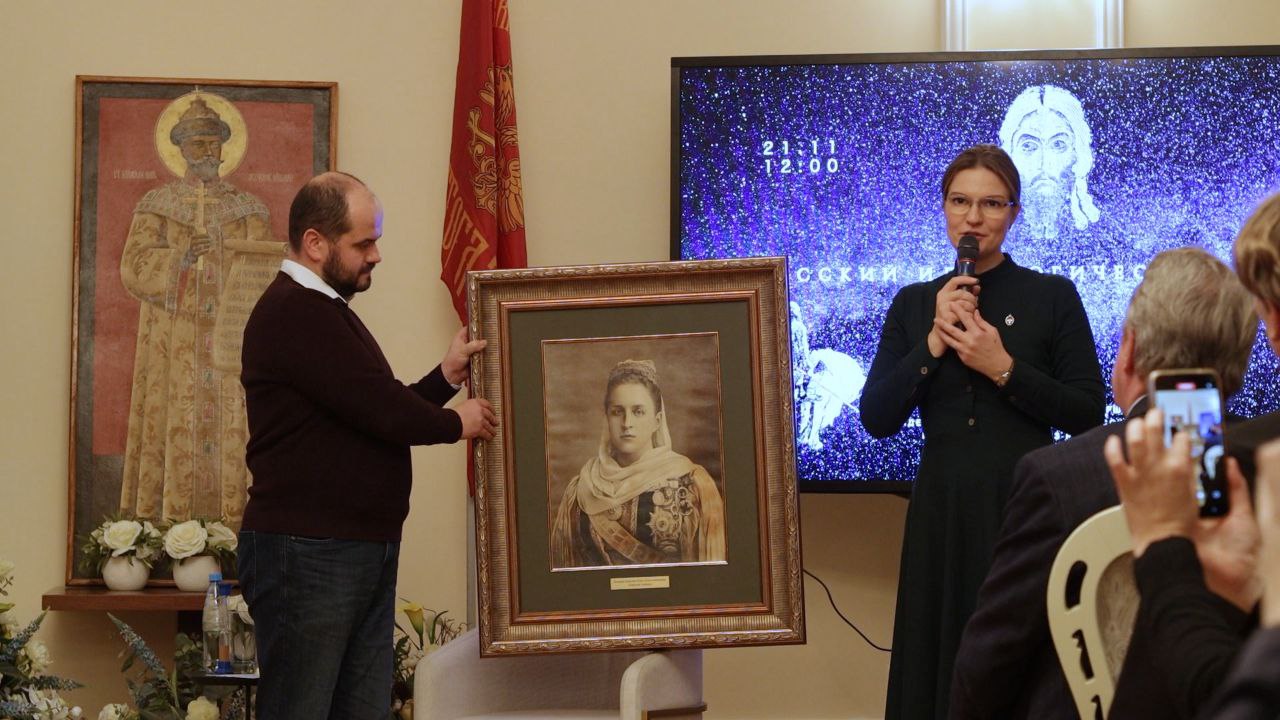 Затем президент Фонда Николая II Садриева Анна Александровна преподнесла в подарок Музею Спорта портрет русской Великой княгини Ольги Константиновны Королевы эллинов и рассказала о её роли в возрождении Олимпиского движения.