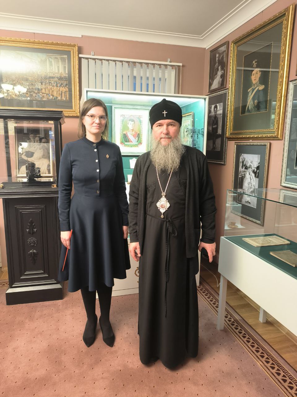 Владыка вместе с гостями осмотрел музей и с большим интересом послушал экскурсию, поделился своим прекрасным впечатлением, поблагодарил за создание музея и любовь к Царской семье.